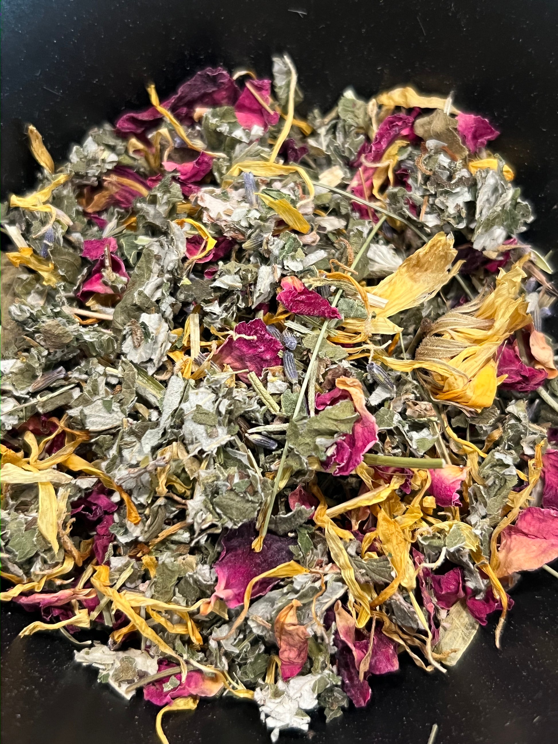 Ingredients: Red Raspberry Leaf, Rose Petals, Oatstraw, Lavender, Calendula, Rosemary